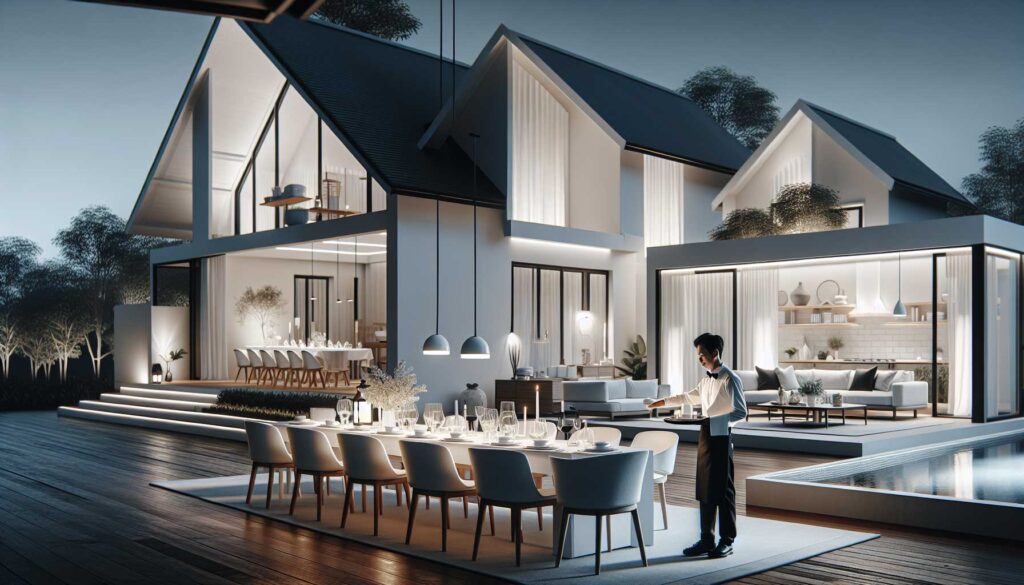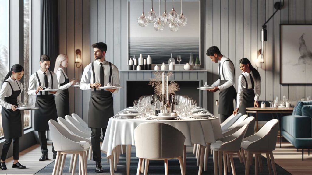 Ein nahtloses Erlebnis für dein Dinner-Event – dafür empfehlen wir, mindestens zwei geschulte Servicekräfte einzuplanen. So garantierst du, dass alles reibungslos abläuft und sich deine Gäste rundum betreut fühlen. Zusätzlich kann ein Assistent, der mit der Event-Dynamik vertraut ist, ungemein hilfreich sein, um sicherzustellen, dass jeder Moment deines Dinners perfekt orchestriert ist.